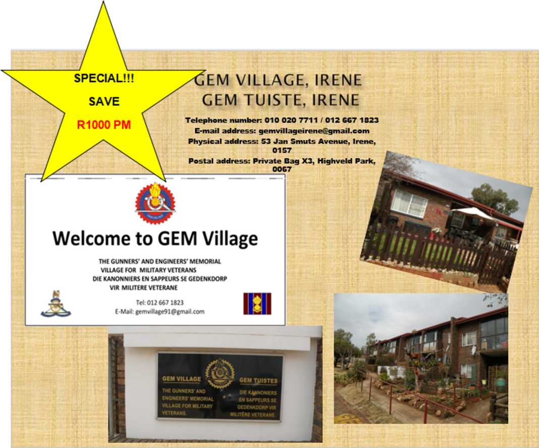 GEM Village Irene – Special Offer Email: gemvillageirene@gmail.com Contact number: 010 020 7711 Post Views: 65