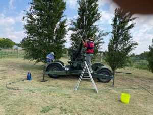 On 3 October, some 25 Gunners from the East Rand, Pretoria, Vereeniging, Johannesburg and Potchefstroom branches of the Gunners’ Association descended on the National Gunners’ Memorial in Potchefstroom. They were ably supported by the Bloem family as well as eager and well disciplined members of iWombe Anti-Aircraft Regiment.